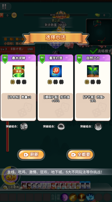 游戏采用动态难度设计,需要针对性搭配技能。小怪波次优先选择冲击波等AOE技能,BOSS战则推荐炮火连天等高爆发技能。必选神技包括:夺命钩(冰冻+高伤)、伸手自摸(全屏流星雨)、九宝莲灯(治疗+伤害)。进阶技巧包括:利用地形卡位、偷取队友怪物提升排名、把握变身时机等。特别要注意XP技能的蓄能节奏,完美时机的终极释放可以造成成吨伤害。组队模式下,合理的角色搭配和技能互补是速通的关键。