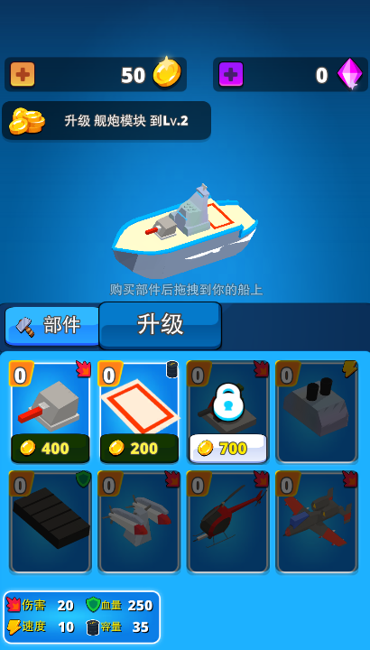 点击部件,拖动到船上,增加武力。每个部件都有独特的属性加成,合理搭配能发挥最大战力。