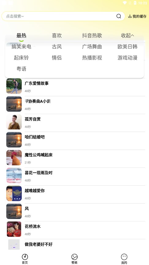 汽泡铃声app以清新简洁的UI设计,为用户带来极佳的使用体验。它不仅提供新潮、热门、搞笑的精品铃声,还通过直观的分类展示,让你快速找到心仪的内容。无论是影视原声、游戏音效、流行歌曲还是经典老歌,汽泡铃声都能满足你的需求。此外,app还会定期推出精品专辑,让你随时掌握最新铃声动态,总有一款会成为你的偏爱。