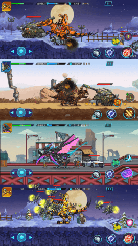 本作最引人注目的就是拟真物理引擎带来的破坏体验,每栋建筑都采用可破坏建模,倒塌时会产生真实的碎片飞溅效果。能量管理系统颇具策略性,玩家需要在攻击、防御和特殊技能间合理分配能量。地图设计暗藏玄机,比如沙漠地图会随机出现沙暴天气,影响机甲能见度和散热系统。12种基础机甲恐龙均可通过200多种改装部件进行深度定制,从等离子吐息到量子护盾,打造独一无二的战斗机器。