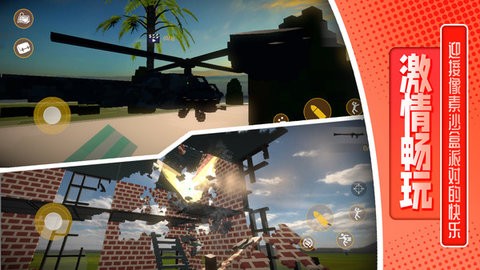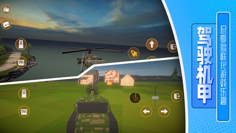 自由组合各种物品,收集像素沙盒材料,甚至可能合成出新奇的物品,驾驶飞机、坦克等各种载具,体验驾驶乐趣。载具系统包含真实的物理操控体验。