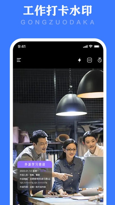 外卖骑手可以使用这个功能实时记录配送轨迹,系统会自动在照片上添加精确的时间和位置信息,为绩效考核提供可靠依据。