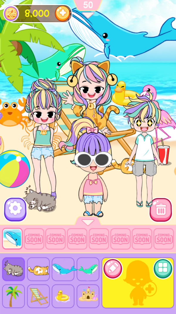 几百个项目供您自由组合,打造独一无二的个人风格。衣服非常丰富,各种风格、季节的应有尽有,构想整体造型自由搭配,从日常穿搭到特殊场合都能完美应对。为您的设计的一个漂亮的女孩准备好发型,眼线,唇彩和许多其他化妆用品,细节之处尽显精致。用服装店里的帽子、背心等装自己,配件系统让搭配更具层次感。点击操作,几分钟的时间可以换几十套衣服,适合喜欢玩换装类游戏的朋友们!游戏还定期更新时尚单品,紧跟潮流趋势,让你永远走在时尚前沿。