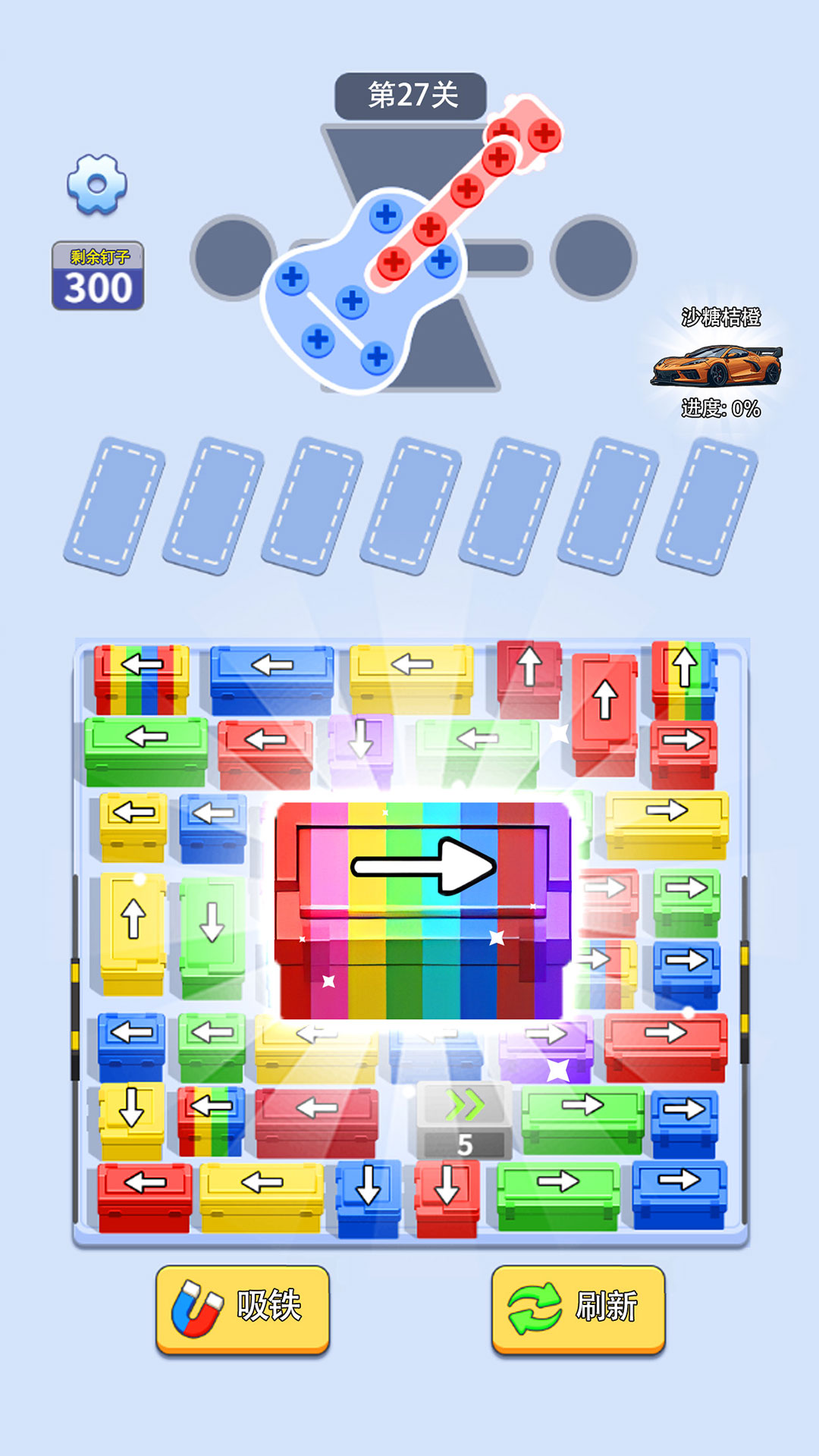 拔钉子打螺丝拥有丰富的关卡设计,超过100个精心制作的关卡等待玩家挑战。每个关卡都有独特的设计理念和通关方式,玩家需要开动脑筋才能找到最佳解决方案。游戏还设置了多种道具和特殊技能,比如可以一次性拔出多个钉子的强力磁铁,或是能够暂时冻结机关的冰冻道具,这些都为游戏增添了更多策略性和可玩性。