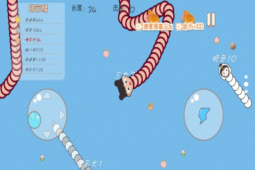 游戏最大的乐趣在于成长过程中的策略规划。当你的蛇身变得越来越长时,每一次移动都需要格外小心,因为稍有不慎就可能撞上自己或对手的身体。游戏采用了鲜明的色彩设计,可爱的蛇头造型让你能轻松区分自己和对手。简洁明了的操作界面会实时显示你的蛇身长度和击败敌人的数量,让你随时掌握战况。此外,游戏还加入了丰富的社交元素,你可以邀请好友一起组队,体验双人合作的乐趣。