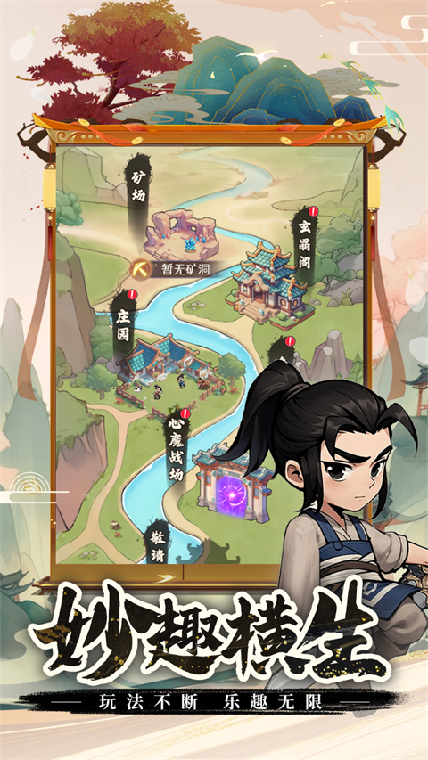 区别于传统放置游戏,剑侠向前冲手游独创"悟道系统",玩家需在游历中收集《九阴真经》《易筋经》等绝世秘籍,通过经脉淬炼、功法融合等深度养成玩法,打造独门武学体系。游戏还创新性地将Roguelike元素融入江湖探索,每次秘境冒险都可能触发隐藏事件——或许在终南山偶遇神雕侠赠予玄铁重剑,或许在古墓深处发现王重阳留下的先天功残卷,这种充满随机性的设计让每次登录都有新鲜体验。