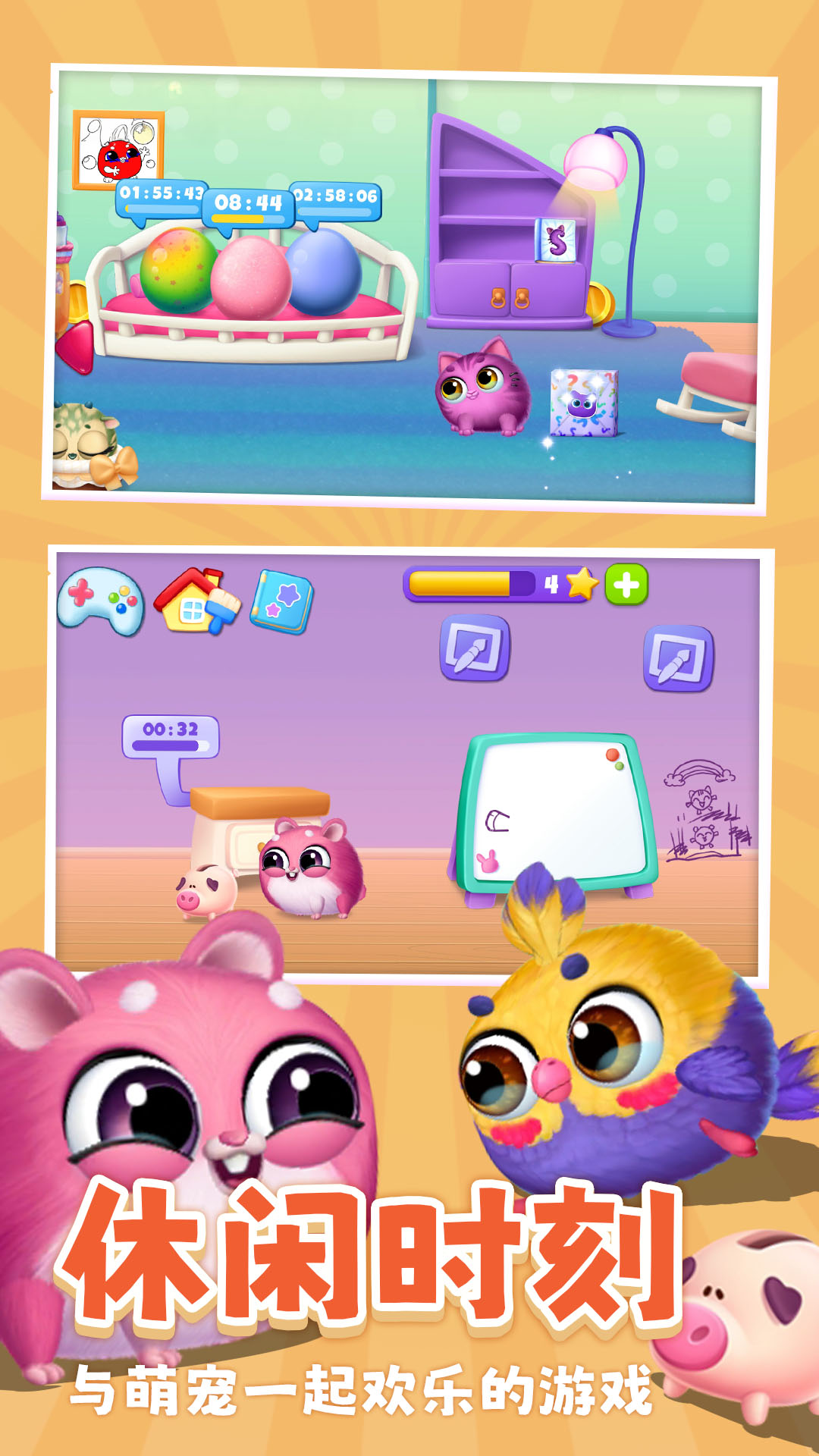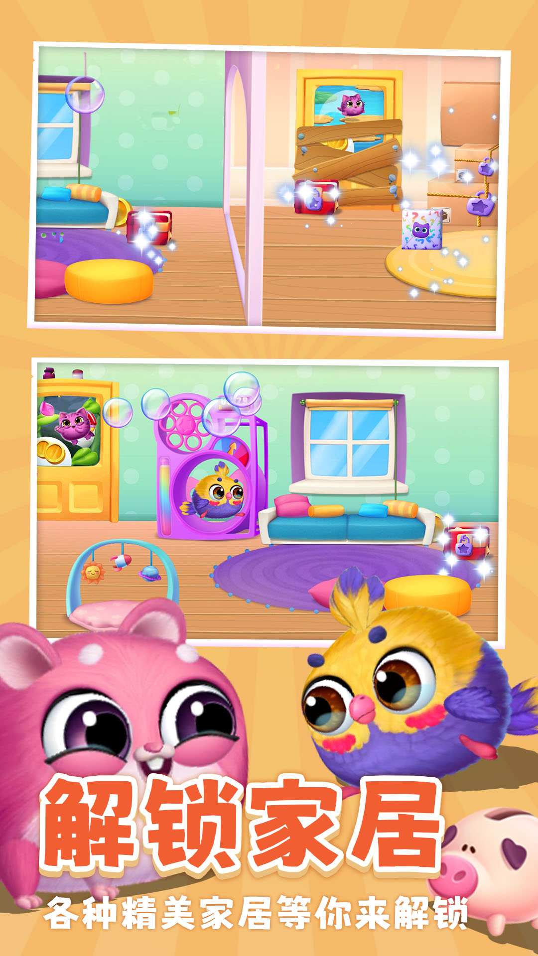 游戏的核心玩法围绕宠物养成展开,玩家需要定期喂食、清洁、玩耍来维持宠物的健康状态。随着亲密度提升,小可爱们会展示更多可爱的动作表情,甚至会主动向玩家撒娇。游戏还特别设计了丰富的装饰系统,玩家可以自由布置房间,为宠物们打造专属的梦幻小屋。从壁纸到家具,数百种装饰品让每个房间都充满个性。
