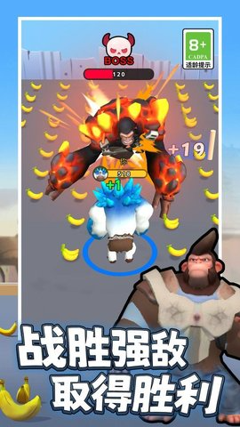 玩家必须通过关卡控制大猩猩角色,捡起大香蕉以获得更高的分数,同时还要注意其他竞争者的突然袭击。游戏特别设置了AI对手系统,这些电脑控制的角色会随机出现在赛道上,给玩家带来意想不到的挑战。
