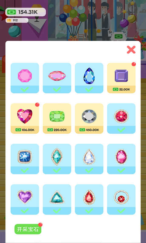游戏拥有令人惊叹的宝石种类,从常见的钻石、红宝石到稀有的宇宙水晶应有尽有。精致的卡通画风搭配细腻的场景设计,营造出梦幻般的游戏世界。深度经营系统让你可以全方位管理店铺运营,从进货到销售都要亲力亲为。顾客满意度系统极具挑战性,你需要通过优质服务和精美商品赢得他们的青睐。宝石品质系统也非常完善,纯度越高的宝石价值越高,这激励玩家不断精进开采和加工技术。
