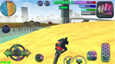 游戏的场景图非常大。你可以步行观看,也可以坐出租车;游戏地图涵盖了整个迈阿密市区及周边地区,包括海滩、商业区、工业区等多种地形,让你可以尽情探索这个虚拟世界的每一个角落。