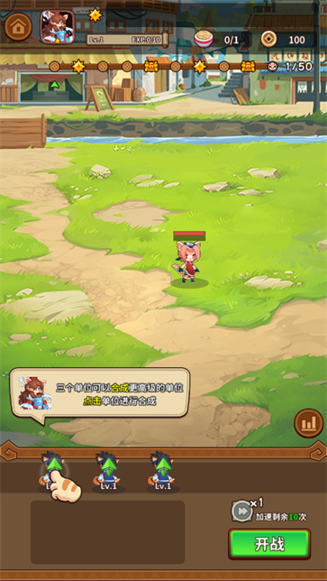 三个单位可以合成更高级的单位,点击单位进行合成,这种合成机制让玩家能够快速提升战力,同时需要合理规划棋盘空间。每次合成都会带来全新的猫咪造型和更强的技能效果。