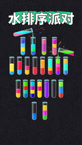 水排序派对是一款充满趣味和挑战的益智解谜游戏,玩家需要通过巧妙操作将不同颜色的液体分类到对应的试管中。游戏玩法简单易上手,但关卡设计巧妙,随着难度提升,挑战性也会逐渐增加。游戏中提供了丰富多样的道具和装饰选项,让玩家可以个性化定制游戏体验,同时还能与全球玩家一较高下。