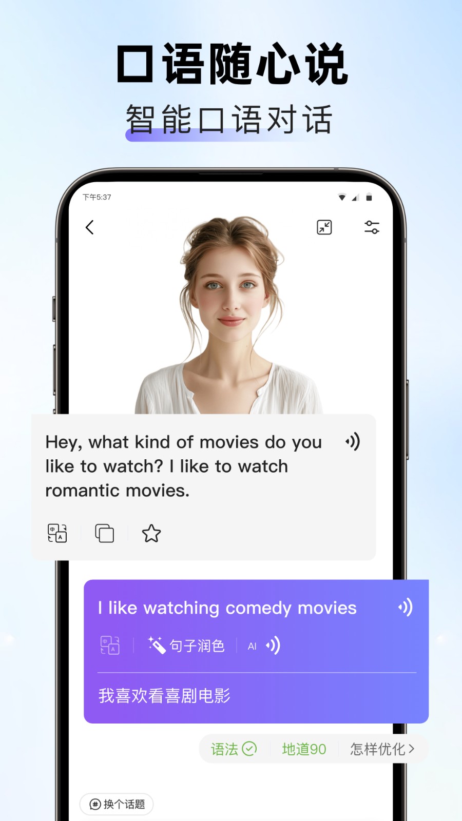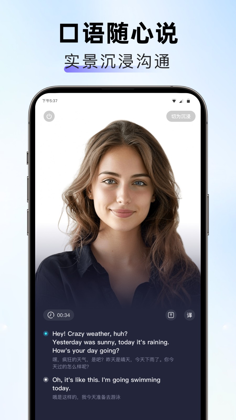 APP支持智能翻译和英语口语功能,在线学习英语超方便。实时翻译功能让你在对话中遇到生词时能立即获取释义,学习过程更加顺畅。