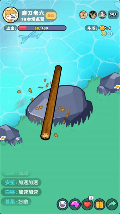 游戏采用直观的触控操作方式,玩家通过左右滑动来调整铁棒的位置和角度,上下滑动则控制磨制的力度和速度。在直播过程中,观众会不断送出各种礼物和打赏,这些互动元素不仅能提升直播人气,还能为磨制过程提供速度加成。
