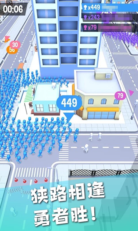 游戏拥有极具魔性的设定,看似清新的城市主题下隐藏着激烈的生存竞争。玩家需要将分散的火柴人快速集结成强大的队伍,与来自世界各地的玩家展开智慧与策略的较量。游戏强调快速反应能力,要求玩家在最短时间内聚集最大规模的人群,通过精准的走位和时机把握来击败对手。独特的吞噬机制让每场对战都充满变数,小团队逆袭大部队的情况时有发生,为游戏增添了更多刺激与惊喜。