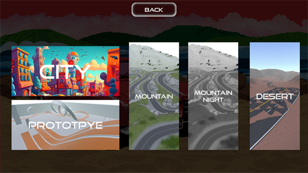 进入后选择游戏地图进行冒险,玩家可以根据自己的喜好去选择地图。游戏包含城市街道、沙漠峡谷、雪山公路等20多种风格迥异的赛道场景。