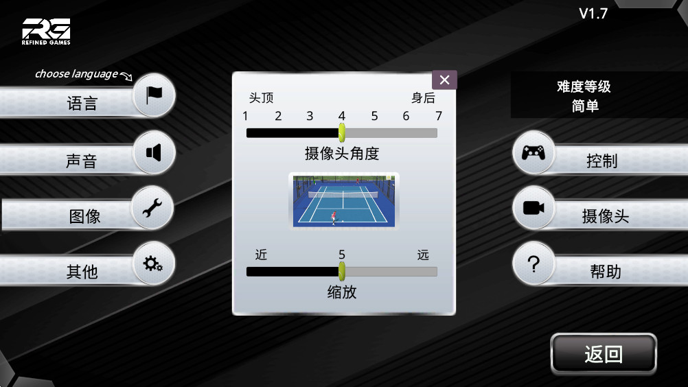 完成语言设置后即可进入游戏主界面,这里提供了多种游戏模式选择。点击"开始游戏"按钮将进入职业生涯模式,玩家可以创建专属角色开始网球征程。主界面还包含训练模式、快速比赛和在线对战等选项,满足不同玩家的需求。