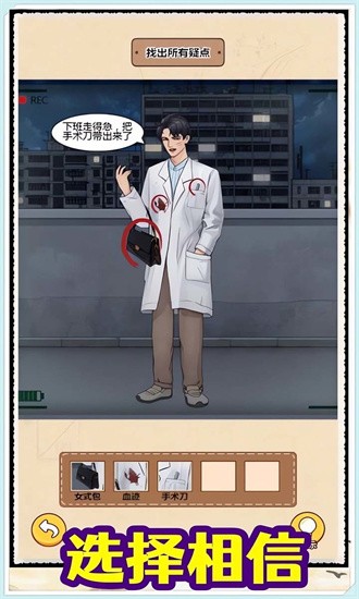 沉浸式找茬是一款极具挑战性的解谜类游戏,它将考验玩家的眼力、观察力和逻辑思维能力。在游戏中,玩家需要根据题目要求,在精心设计的场景中寻找隐藏的线索或差异。游戏提供了丰富多样的场景,从神秘的凶案现场到充满细节的日常生活场景,每一关都能带给玩家全新的体验和惊喜。通过不断挑战关卡,玩家不仅能享受解谜的乐趣,还能锻炼自己的专注力和反应能力。游戏操作简单易上手,适合各个年龄段的玩家,快来下载体验吧!