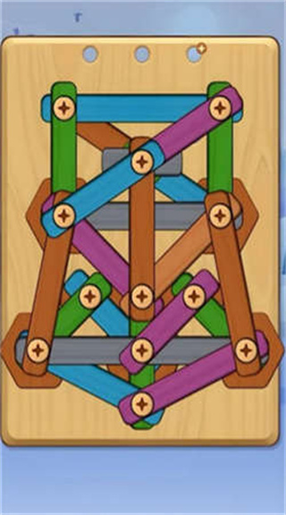 游戏包含四季主题的多样化场景,从春日花园到冬日雪景,每个主题都配有独特的视觉元素和色彩搭配。背景音效采用ASMR级别的环境声录制,螺钉转动时的金属摩擦声与木块落地的闷响形成完美配合。画面采用3D建模与手绘贴图结合的方式,连木纹走向都经过精心设计,新手教程还特别加入了动态箭头指引功能。