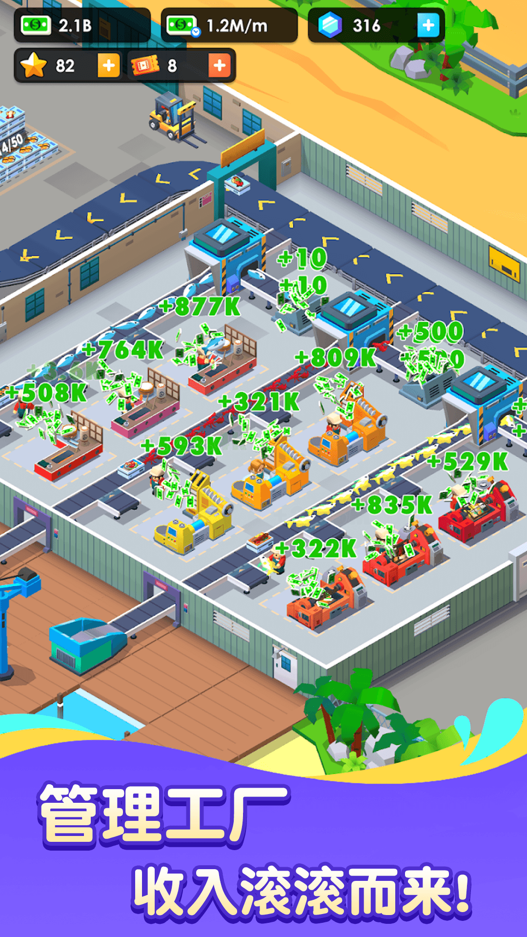 超级海鲜工厂特别设计了轻松愉悦的背景音乐和生动的音效,让玩家在经营过程中享受沉浸式的游戏体验。游戏支持离线收益,即使关闭游戏,工厂也会持续运转,让玩家随时都能收获满满的成就感。此外,游戏还设有成就系统和排行榜功能,玩家可以与好友一较高下,看看谁才是真正的海鲜大亨。无论是想打发碎片时间,还是享受经营乐趣,超级海鲜工厂都能为你带来欢乐的游戏时光。