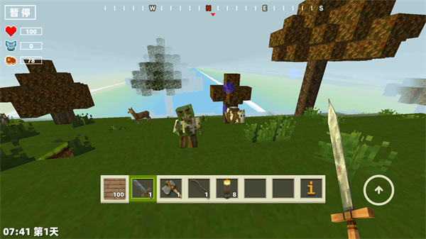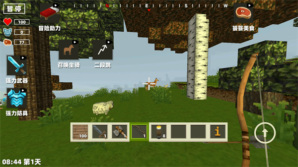 选择武器装备 游戏提供丰富的装备系统,包含近战武器、远程弓弩和特殊功能装备三大类。玩家可通过合成台将收集的方块转化为强力装备,每种武器都拥有独特的攻击特效和属性加成。装备组合系统允许玩家自由搭配不同属性的护甲和武器,打造个性化战斗风格应对各种冒险挑战。