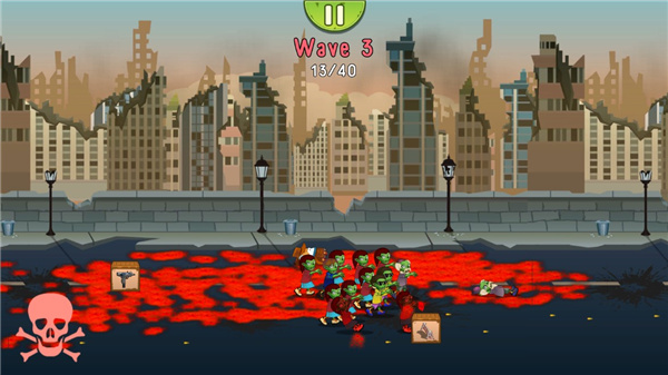 游戏采用波次制战斗,每波僵尸的数量和种类会逐步升级。界面顶部会清晰显示当前波次、剩余敌人数和即将出现的特殊敌人类型。合理利用场景中的油桶、电网等环境要素,可以大幅提升战斗效率。