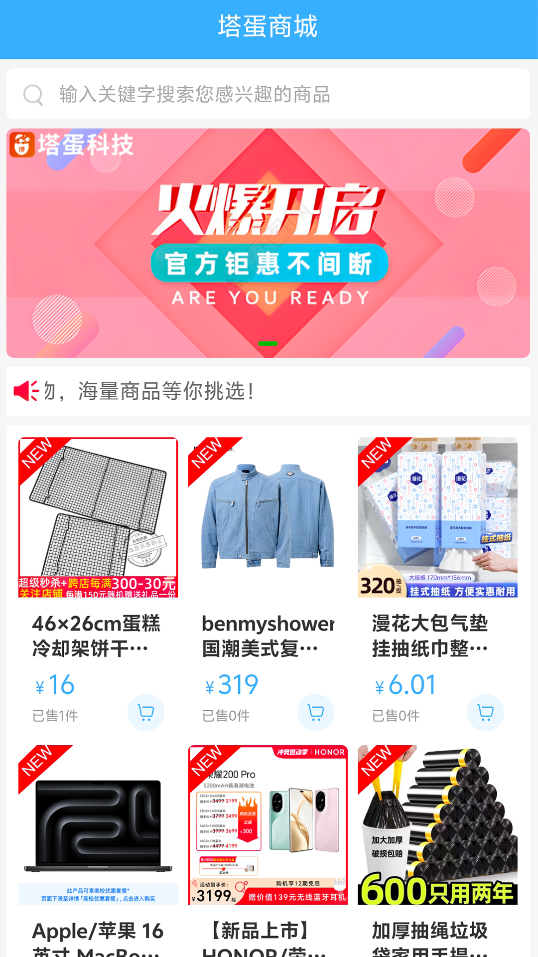 在塔蛋商城,你可以享受到一站式便捷购物体验,随时随地轻松选购官方正品商品。无论是热门新品还是经典爆款,塔蛋商城都会第一时间为你推送最新鲜的商品资讯,让你不错过任何潮流趋势。除了丰富的商品选择,塔蛋商城还为你准备了超多优惠活动,包括限时折扣、满减优惠、会员专享福利等,让你以最实惠的价格买到心仪商品。