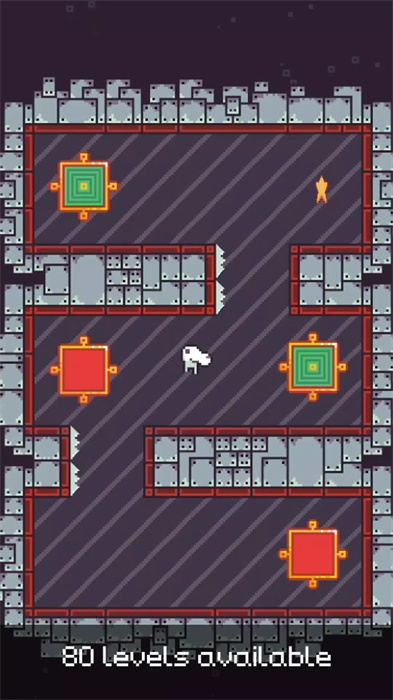 游戏提供了多达80个精心设计的关卡,每个关卡都有独特的平台布局和障碍设置。玩家可以自由选择关卡挑战顺序,按照自己的节奏推进游戏进度。在关卡中,玩家需要通过精准的跳跃操作来躲避各种障碍物,最终到达指定的终点位置。随着关卡推进,游戏难度会逐渐提升,引入更多复杂的跳跃机制和障碍类型。