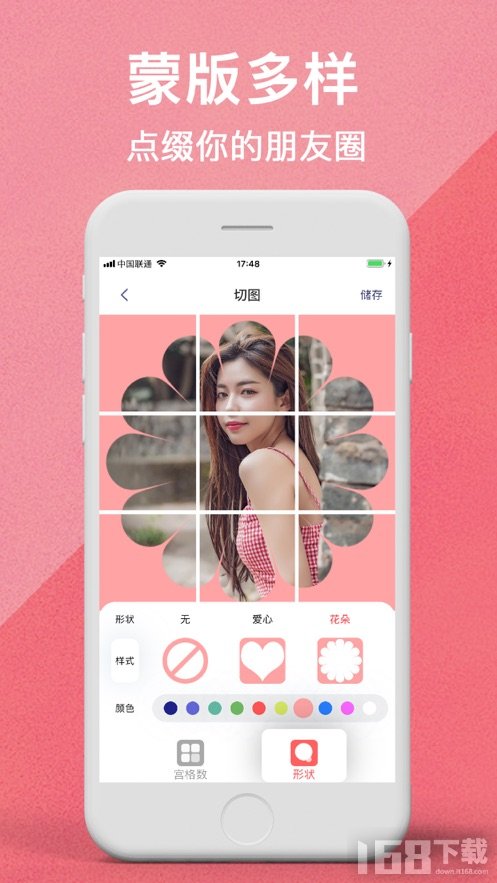 【切割形状】提供爱心、四叶草等十余种创意形状模板,让您的照片切割更具趣味性和个性化。每种形状都经过精心设计,确保切割边缘平滑自然,为您的作品增添独特魅力。