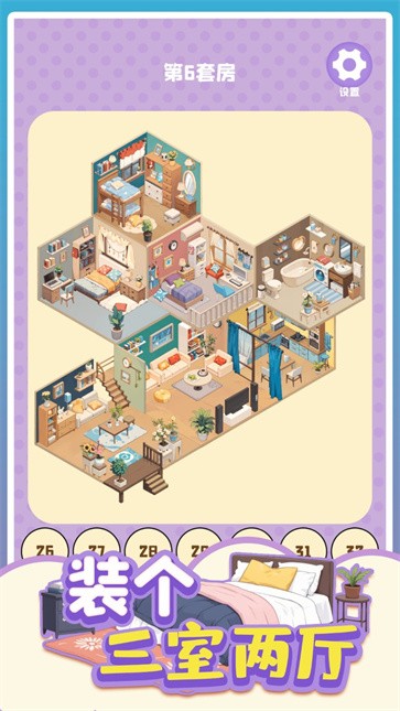 《装个三室两厅》是一款沉浸式模拟装修类游戏,让玩家从零开始体验设计并装修一套三室两厅住宅的全过程。游戏以高度自由的创意空间为核心,为玩家提供了数千种家具、装饰品和装修材料,涵盖从地板瓷砖到吊灯饰品的全方位选择。玩家可以像专业设计师一样,根据自己的审美偏好进行个性化搭配,打造出独一无二的梦想之家。