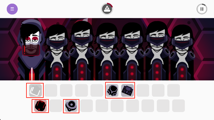 示例组合:基础节奏:红色鼓点装饰物(机械齿轮音效)叠加在角色1和角色2上。旋律层:蓝色旋律装饰物(合成器琶音)分配给角色3和角色4。特效增强:紫色特效音(数据洪流音效)拖拽至角色5,触发动态光效。这些组合展示了游戏丰富的音效层次,玩家可以自由调整各音轨的音量和效果参数。