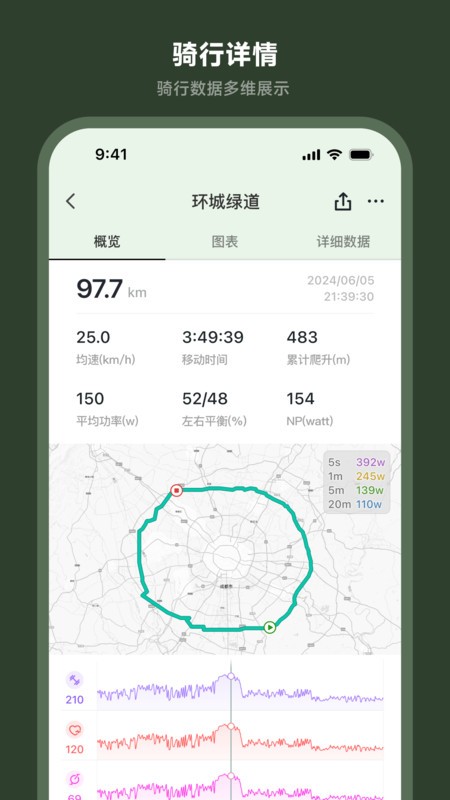 提供多维度的数据可视化图表,包括速度、距离、海拔等基础指标。深入分析功率输出、心率区间等专业数据,帮助用户了解训练效果。支持历史数据对比,直观展示进步曲线。基于用户目标,智能推荐个性化训练方案,提升训练效率。