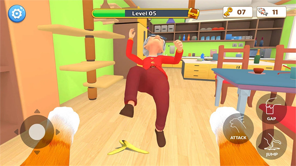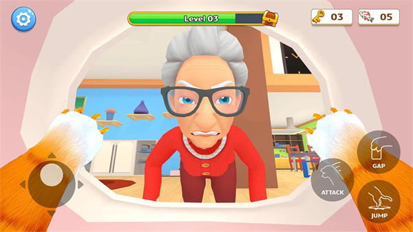 在游戏中,玩家需要运用智慧与敏捷来设计并实施各种恶作剧。从简单的刮擦家具到复杂的连锁破坏,每一场恶作剧都需要精心策划。玩家可以探索家中的各个区域,发现新的破坏目标和隐藏的互动元素。随着游戏的进行,玩家将解锁更多有趣的恶作剧技能和新的活动区域。但要注意的是,家中的奶奶可不是好惹的,她会时刻警惕猫咪的破坏行为,一旦被发现就会展开追捕。玩家需要灵活躲避奶奶的视线,在破坏与逃跑之间找到平衡,体验紧张刺激的猫鼠游戏。
