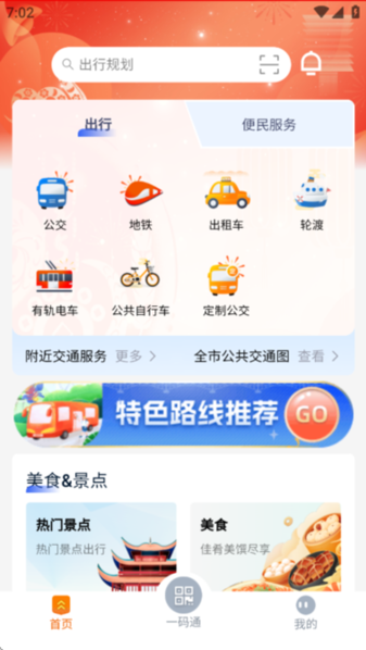 一码通乘:一个二维码即可畅行公交、电车、轮渡等多种交通工具,告别多卡切换的烦恼。