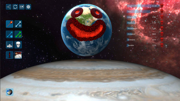 这款游戏为你提供了前所未有的毁灭体验。你可以使用包括核弹、激光、引力波等在内的数十种高科技武器,随心所欲地摧毁、冻结或淹没地球和太阳系的其他行星。每种武器都有独特的破坏效果和物理反馈,让你感受不同方式带来的毁灭快感。游戏还支持自定义星球参数,让你创造属于自己的毁灭实验场。