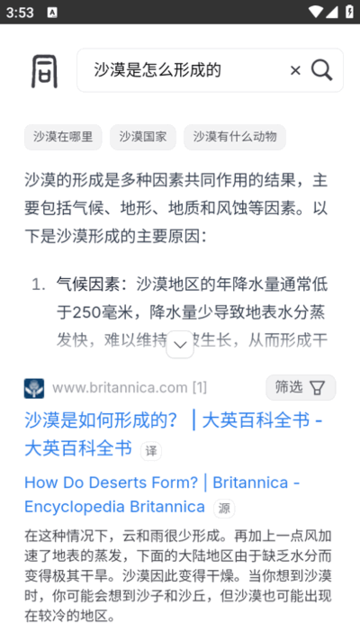 多语言搜索与翻译:突破传统搜索引擎的语言限制,支持50多种语言的直接搜索,并配备智能语境识别翻译系统,能够准确理解专业术语和俚语表达,真正实现全球优质知识资源的无障碍获取。