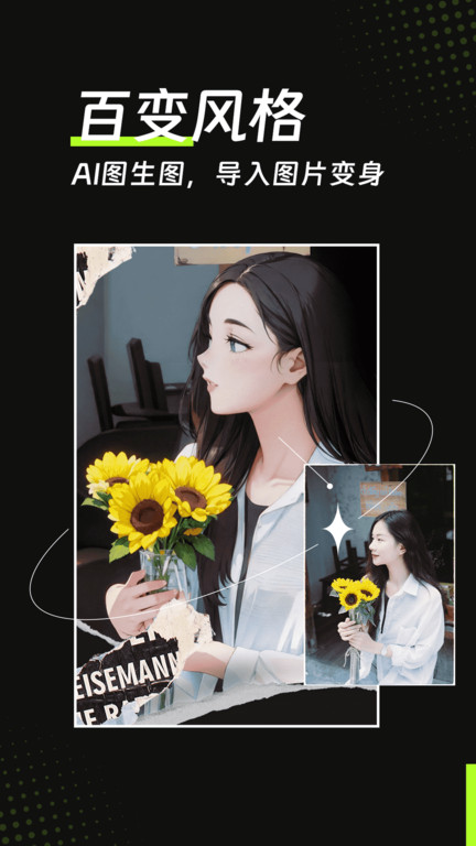 创新的AI图生图技术,只需导入照片就能实现多种风格转换,从二次元到油画风,随心变换。
