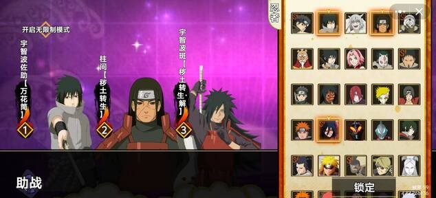根据个人习惯修改当前阵容,可以从已拥有的忍者中,选择3名忍者和助战