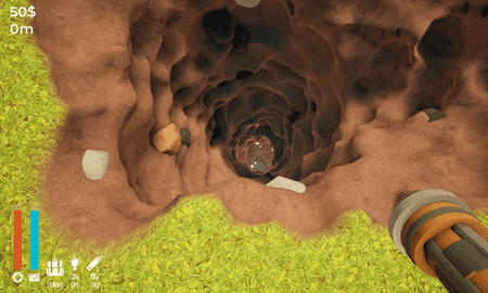 游戏操作简单易上手,首先选择合适的地点开始挖掘。随着挖掘的深入,你需要不断扩大洞口,寻找隐藏的宝藏。找到的宝物可以出售换取金币,用于升级铲子等基础工具。随着资金积累,你可以购买更高级的钻头、绳索和照明设备。当遇到坚硬岩石时,还可以使用炸弹来开路。游戏后期,你将拥有完整的采矿装备,可以探索更深层的地下世界。