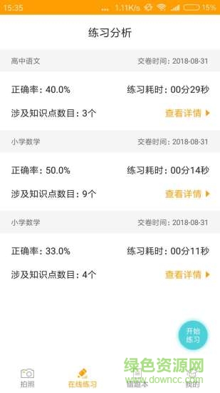 练习分析:每次在线练习结束后,系统会生成详细的练习分析报告,包括正确率、知识点掌握情况等,帮助用户了解自己的学习效果。