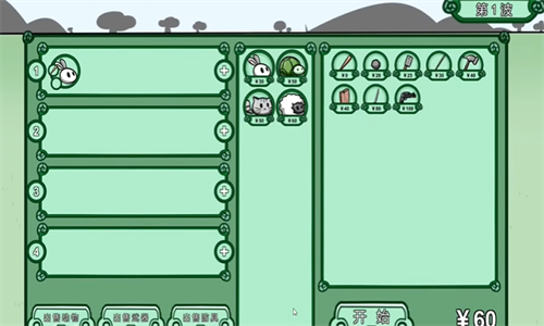 农场保卫战正式开始。你要根据不同的动物属性来组合武器装备控制动物战斗。通过合理的搭配,玩家可以打造出强大的战斗阵容。