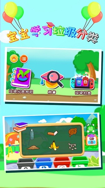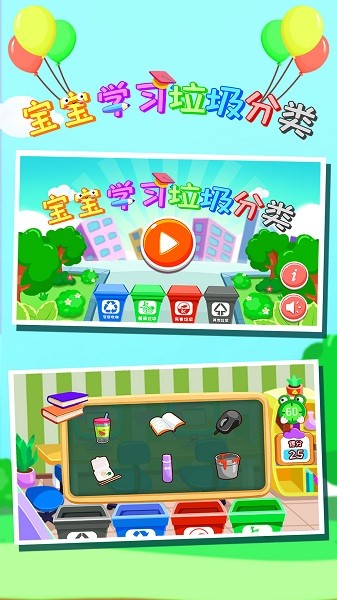 本软件专为2岁、3岁的婴幼儿、学前班的小孩、上小学的小学生量身打造。模拟垃圾分类场景,学会处理垃圾分类的正确方式,为了我们孩子的未来,垃圾分类从我做起!软件支持家长监控功能,可以查看孩子的学习进度和掌握情况。