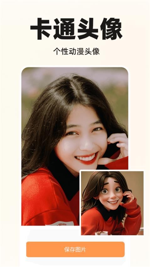 卡通照片: 一键将照片变成卡通风格,让你的照片变得更加可爱有趣。
