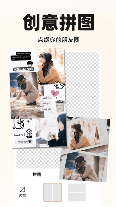 软件拥有多种简单创意拼图玩法,享受全新制作;从经典拼接到创意排版,激发你的设计灵感。