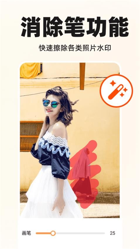 拥有的消除笔工具非常的有趣,各种水印可去除;智能修复算法让消除痕迹无影无踪,还原照片本来面貌。
