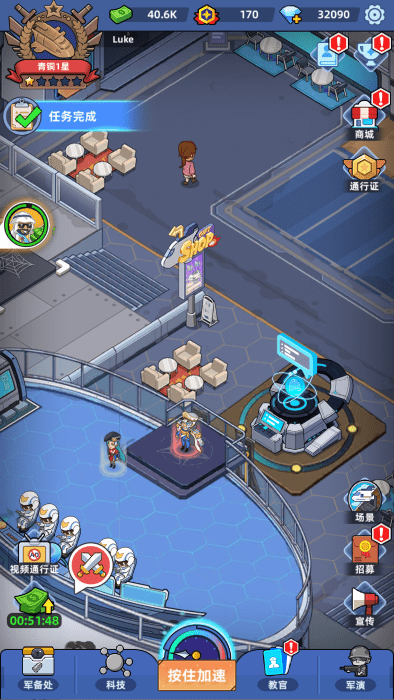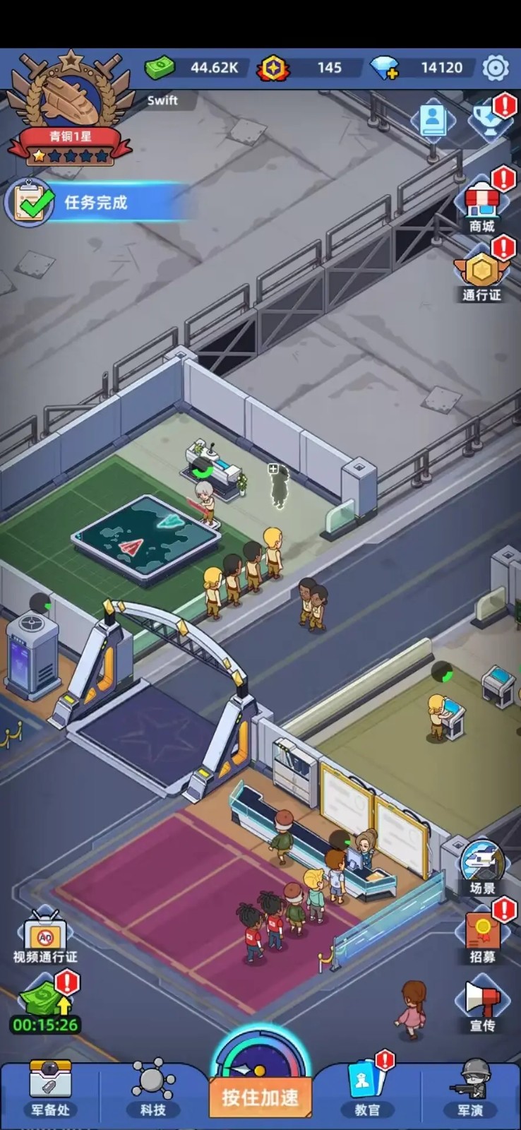 游戏最突出的特色是其完善的自动化管理系统,你可以设置部队的自动训练计划,通过合理的投资来提升闲置收益。雇佣专业的军事教官团队能够显著提高部队的训练效率,让你的军队始终保持最佳战斗状态。游戏内设有多样化的训练项目,包括精准射击训练、体能障碍挑战、远程狙击课程以及近身格斗技巧等,全方位提升部队作战能力。经济系统同样丰富,玩家可以通过多种途径积累财富,包括战斗奖励、资源交易和星际贸易等,最终目标是建立自己的军事商业帝国。值得一提的是,游戏支持离线收益机制,即使不在线也能持续获得资源收益,让每位指挥官都能轻松享受成长的乐趣。