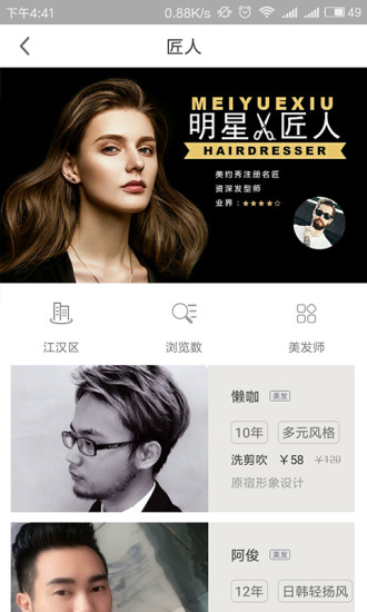 美约秀打造了一个高端美业运营平台,通过信息化手段整合城市优质美业资源。平台采用LBS定位技术,智能推荐附近评分最高的美发沙龙和设计师,让用户轻松找到心仪的服务。我们还提供详细的匠人档案、作品展示和用户评价,帮助您做出明智选择。