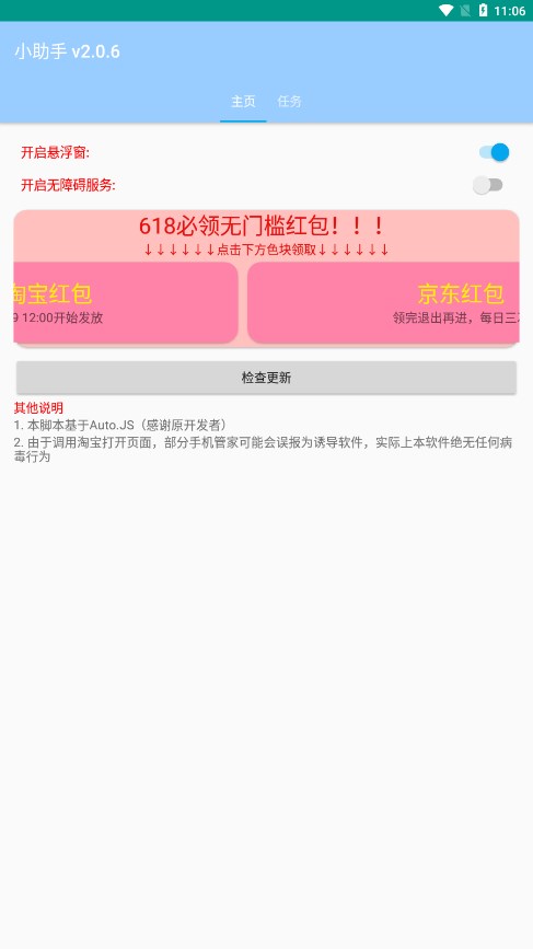 京东618全民拆快递脚本是一款专为2023年618购物节打造的智能任务辅助工具,能够帮助用户自动完成京东和淘宝平台上的各类活动任务,轻松参与瓜分现金红包活动。只需打开辅助脚本并开启悬浮窗功能,即可实现一键操作,全程自动化运行,让用户省去繁琐的手动操作,享受便捷高效的购物节体验。
