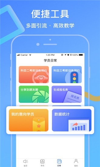 驾所通教练版是专为现代驾校教练打造的移动互联网教学工具,其核心价值在于打破传统教学中的信息壁垒,构建教练与学员之间的高效沟通桥梁。这款产品集学员管理、课程安排、教学跟踪、数据分析等功能于一体,同时还提供专业化的教学课程资源库。通过使用驾所通教练版,教练不仅能显著提升学员的学习效果,还能有效增加自身收入来源,实现教学质量和经济效益的双重提升。