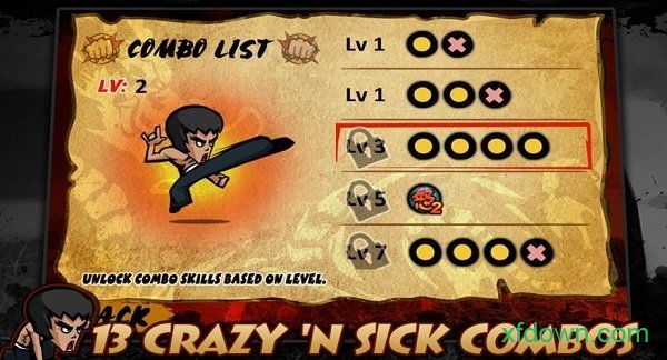 功夫战士中文版是一款极具特色的横版格斗动作游戏,游戏采用独特的卡通人物造型搭配暗黑色调渲染,营造出紧张刺激的战斗氛围。游戏画面在保证玩家格斗技能释放流畅度的同时,还通过视觉效果的精心设计,让玩家在游戏中时刻保持一种躁动不安的兴奋状态,这种沉浸式的体验让玩家更容易投入到游戏的世界中。游戏中的每一个细节都经过精心打磨,从人物动作到场景设计都充满了东方武术的韵味。如果你热爱格斗游戏,渴望体验酣畅淋漓的战斗快感,那就快来下载这款游戏吧!